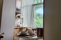 Мини-кухня в апартаментах оснащена электрической плитой, раковиной, вытяжкой, посудомоечной машиной, холодильником, микроволновой печью, а также электрическим чайником. В распоряжении гостей вся необходимая кухонная утварь, в том числе бокалы и кулер для шампанского.