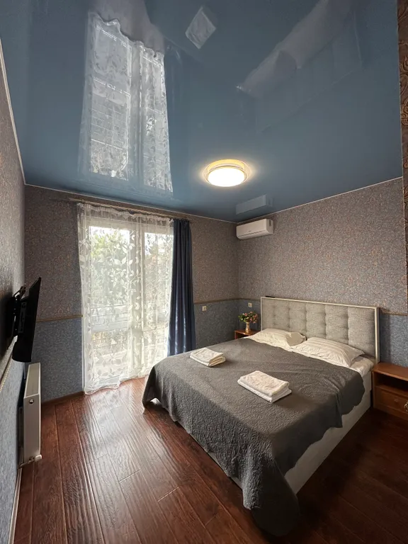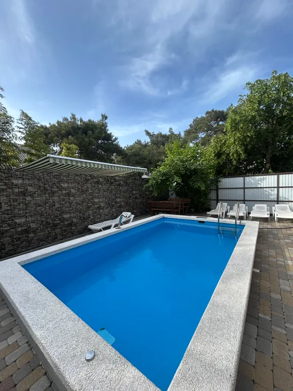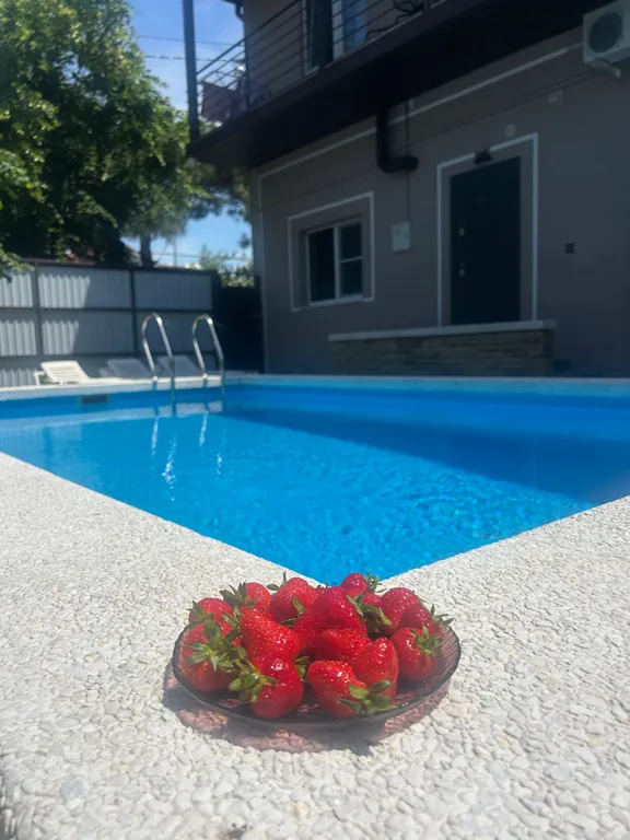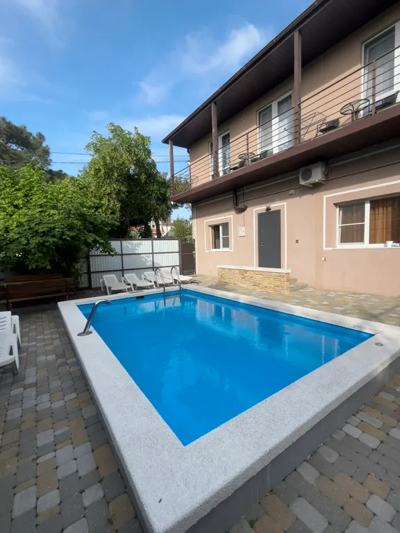 Замечательное место для отдыха. В реальности выглядит лучше, чем на фото при бронировании. Останавливались в семейном двухкомнатном номере на первом этаже. Выход во двор к бассейну, есть лежаки, столик и скамейки под тенистым деревом. - Номер. Чисто, в каждой комнате свой туалет и душевая, стиральная машинка. Есть сплиты, но дом не нагревается, внутри прохладно, хорошо. Между комнатами есть небольшая кухня с минимумом необходимых вещей. Для размещения компании этот номер подходит отлично. - Бассейн. Очень чистый, вода с подогревом, вечером включают красивую подсветку. Плавать можно до 21:00, поэтому нет шумных вечеринок под окнами, что является плюсом для отдыха. - Территория. Чистая, ухоженная. Есть несколько зон для отдыха, шезлонги, сушилки для одежды и полотенец. Днём не жарко, есть дерево и беседка. - Расположение. Недалёко от моря по тенистым улочкам с соснами. Рядом «Пятёрочка», «Кэш&Керри», по пути столовые. Мы ходили в основном на пляж 2к25 и «Сады морей». Но выбор большой. Отдых очень понравился, планируем вернуться снова, на более длительный период.