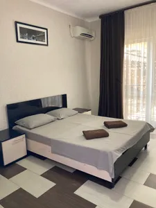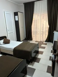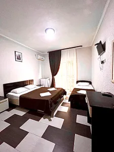 Номера рассчитаны на проживание 2х−4х гостей. В номерах все удобства: кондиционер, Ж/К телевизор, туалетная комната, душ, горячая и холодная вода круглосуточно, WI-FI, балкон.