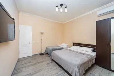 Обычный номер с тремя кроватями, кухня общая, холодильник общий, хорошее постельное, номер чистенький.