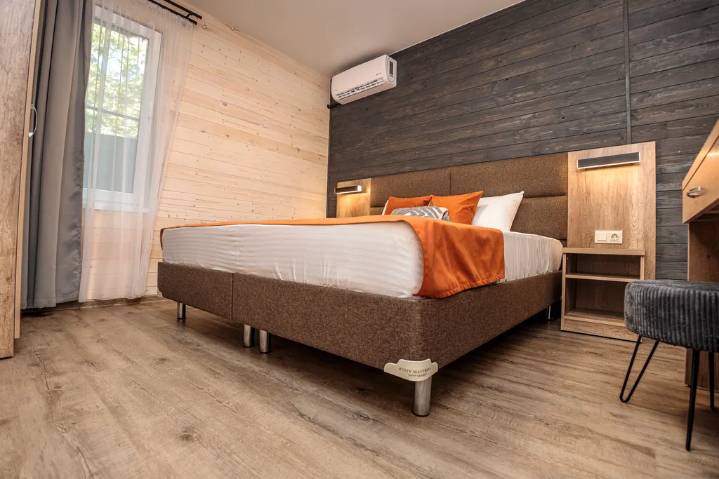 Номерной фонд турбазы включает комфортабельные домики с современными удобствами. Каждый из них