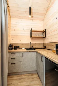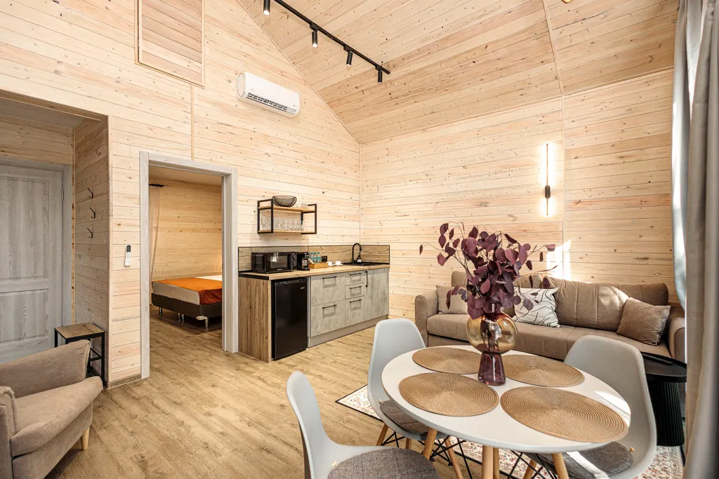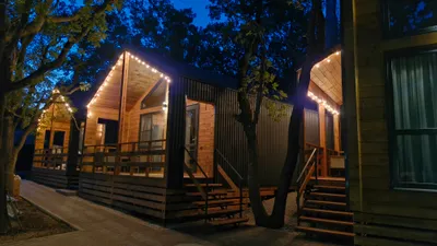 Приятно, когда ожидание по фото полностью совпадают и даже превосходят реальность. Замечательная администратор Екатерина, современная и комфортная концепция «Дубки» располагают к отвлечению от рабочих будней. Мы жили в 3 домике, все продумано до мелочей, комфортная мебель, сплиты, TV в каждой комнате, кухонная зона оснащена всем необходимым (варочная панель, микроволновка, кофемашина, чайник, посуда и др),До моря не больше 15-20 минут (в зависимости от вашего темпа ходьбы), в 5 минутах все необходимые магазины (5, магнит, овощные ларьки, КБ, аптека и др). Удачи и процветания всей команде 🌟🌟🌟🌟🌟