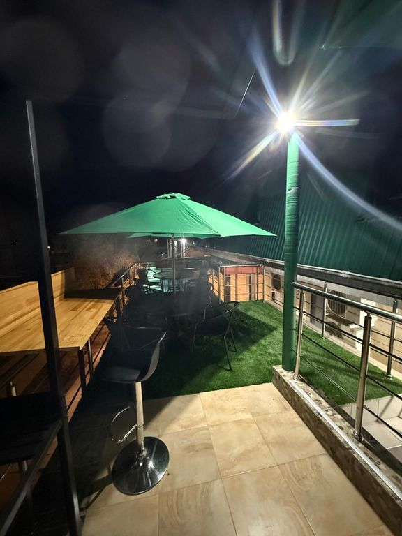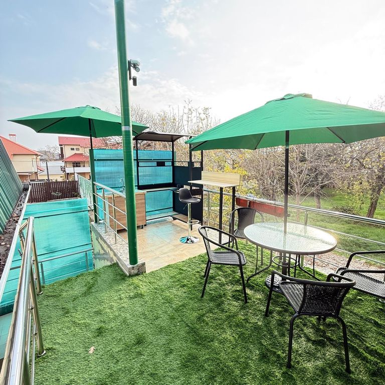 Место для отдыха на балконе под зонтиками с электромангалом