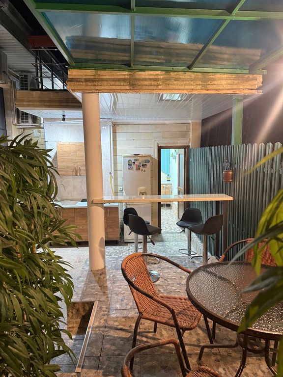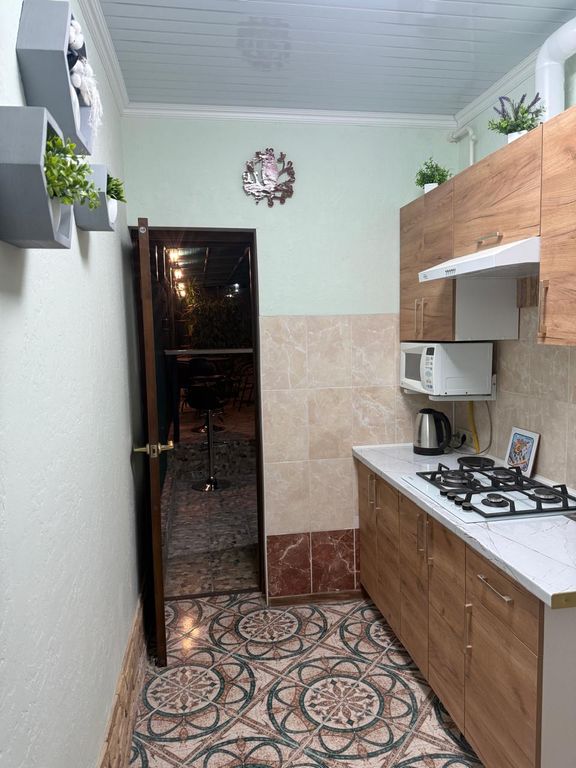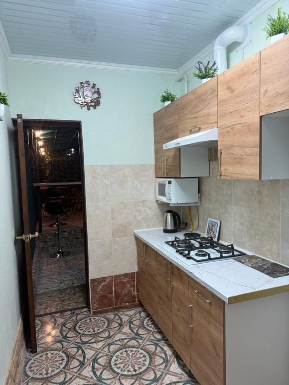 Отличный тенистый дворик, кухня с возможностью готовить, достаточно посуды. Место для стирки и сушки белья.