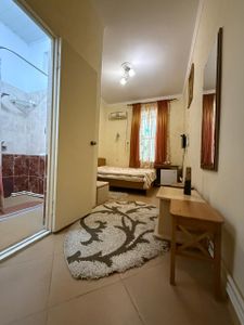Чудесную атмосферу покоя и тишины Вы почувствуете в нашем саду. Аромат вековых сосен, пение птиц, и шум моря, всего лишь в 200 метрах, приятно манит к себе, а по вечерам шашлычок под коньячок, свечи и приятная музыка, никого… не оставят равнодушным.
