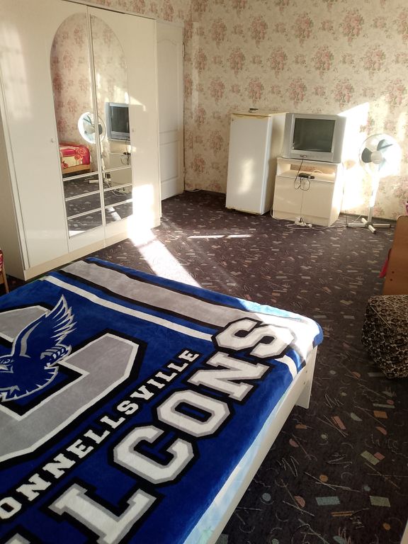 Гостеприимный хозяин, приятная атмосфера. На кухне можно без проблем приготовить, есть все. Достаточное кол-во душей и туалетов. В номерах вентилятор и телевизор. Удобная парковка на улице рядом с домом. Проживанием мы остались довольны.