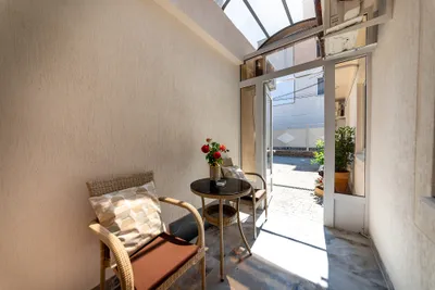 Большая вместимость. Три спальни + небольшая комната с диванчиком, там играли дети. Отдельный двор и в нем большой стол с диваном, приходили гости, все 8 взрослых и двое детей разместились. Рядом с морем и центральный рынком, на выходных как раз была ярмарка.