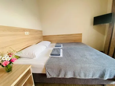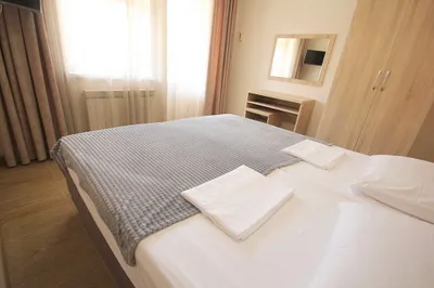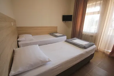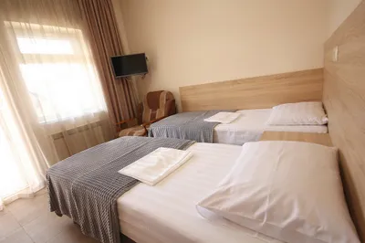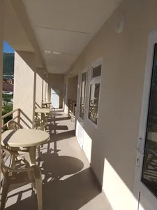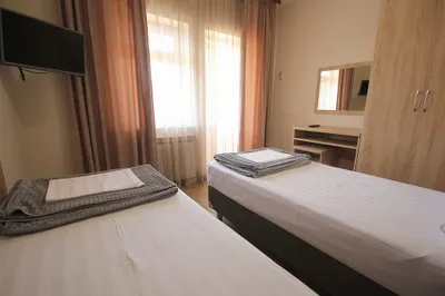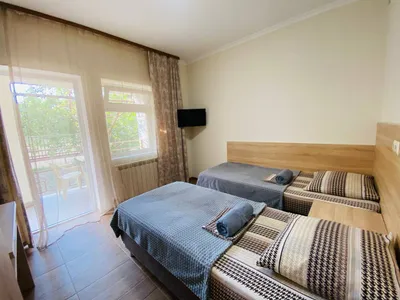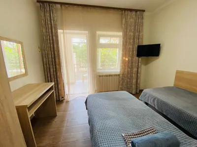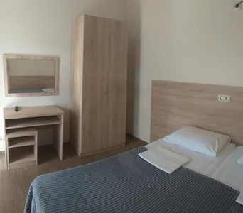 3-х этажная мини гостиница. Находится в центре города на тихой улочке, на каждом этаже 3 номера общая ванная комната, на каждом этаже мини кухня, холодильник. Все номера оборудованы сплит системойобщий балкон с видом на горы и сад